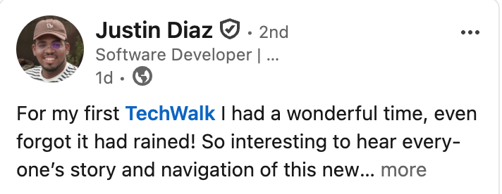 Huge thanks to everyone who shares their TechWalk moments online. Word of mouth has always been our biggest growth driver, and every post, tag, and mention helps our community reach even more walkers. We’re grateful for you!