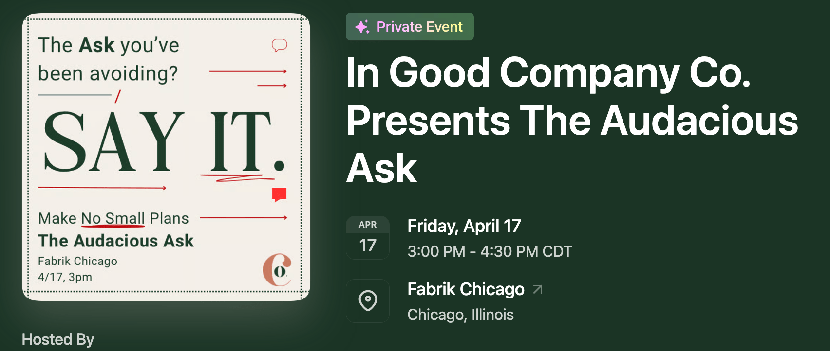 And thanks to our sponsors AXIA Partners, the pre-IPO readiness advisors for the refreshments before and after the event!