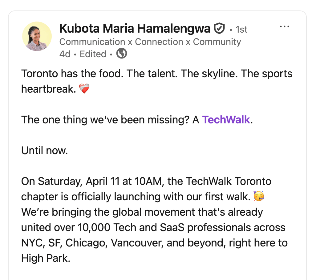 Welcome to the weekly TechWalk newsletter. We are a networking community for Tech and SaaS professionals that offers weekly walks hosted by industry experts and interesting individuals.